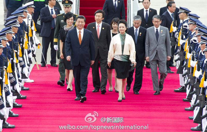 ??? 新華網(wǎng)北京7月3日電 據(jù)新華社“新國際”微博報道,禮兵注目,禮炮鳴響。3日中午,習(xí)近平主席的專機(jī)穩(wěn)穩(wěn)降落在首爾城南機(jī)場,習(xí)近平和夫人彭麗媛走下舷梯,受到韓方熱烈歡迎。這是習(xí)近平擔(dān)任國家主席后首次訪韓。2005年、2009年,他曾兩次訪問韓國。?