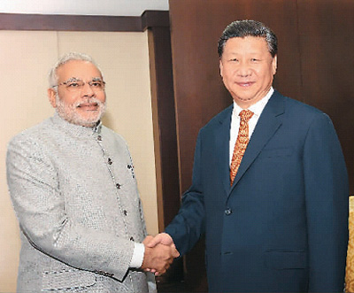習(xí)近平強調(diào),中印雙方要加強交往,我期待著在不久的將來訪問印度,歡迎莫迪總理早日訪華。雙方要對接各自發(fā)展戰(zhàn)略,建立更加緊密的發(fā)展伙伴關(guān)系,擴大文化、教育、宗教、青年等領(lǐng)域友好交流,在鐵路等基礎(chǔ)設(shè)施建設(shè)、產(chǎn)業(yè)投資等領(lǐng)域打造一批示范性項目,擴大服務(wù)貿(mào)易、投資、旅游等領(lǐng)域合作,逐步實現(xiàn)雙邊貿(mào)易總體平衡和可持續(xù)發(fā)展,推進孟中印緬經(jīng)濟走廊建設(shè),引領(lǐng)區(qū)域經(jīng)濟一體化進程。中印要加強多邊領(lǐng)域合作,共同參與國際規(guī)則制定,增強發(fā)展中國家的話語權(quán)。中方歡迎印方作為創(chuàng)始成員加入亞洲基礎(chǔ)設(shè)施投資銀行。雙方要以積極和向前看的態(tài)度管控和處理分歧,通過友好協(xié)商,盡早找到公平合理、雙方都能接受的邊界問題解決辦法。在最終解決前,共同維護好邊境地區(qū)和平安寧。