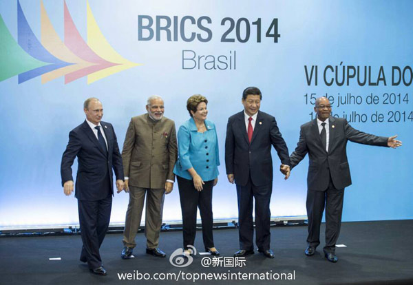 ???? 新華網(wǎng)北京7月16日電 據(jù)新華社“新國際”微博報道,習近平在出席金磚國家領導人第六次會晤時提出,要發(fā)揚金磚國家獨特的“開放、包容、合作、共贏”的合作伙伴精神,要堅定不移推動經(jīng)濟可持續(xù)增長,堅定不移形成全方位經(jīng)濟合作,堅定不移塑造有利外部發(fā)展環(huán)境,堅定不移提高道義感召力。