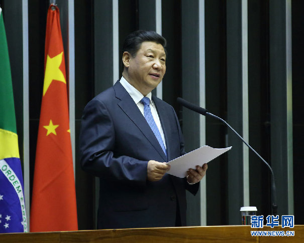 ??? 7月16日,國家主席習(xí)近平在巴西國會(huì)發(fā)表《弘揚(yáng)傳統(tǒng)友好共譜合作新篇》的演講。 新華社記者蘭紅光攝