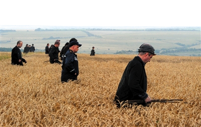 由于遺骸散落范圍達25平方公里,搜尋需要大量的人力。除了救援人員和警察,頓涅茨克的礦工們,也在下班后加入了搜索隊伍。現(xiàn)場圖片顯示,身穿黑衣頭戴安全帽的礦工們,在一片向日葵地中仔細地搜尋。