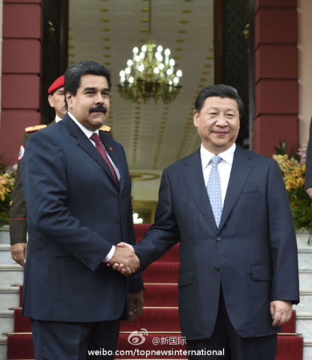 ????新華網(wǎng)北京7月21日電 據(jù)新華社“新國際”微博報(bào)道,習(xí)近平20日同馬杜羅總統(tǒng)會談時說,我們要加強(qiáng)頂層設(shè)計(jì),以金融和投資為引擎,以能源合作為主軸,基礎(chǔ)設(shè)施建設(shè)、農(nóng)業(yè)、礦業(yè)、科技合作等多個輪子一起轉(zhuǎn),促進(jìn)中委合作全方位發(fā)展。(李學(xué)仁攝)