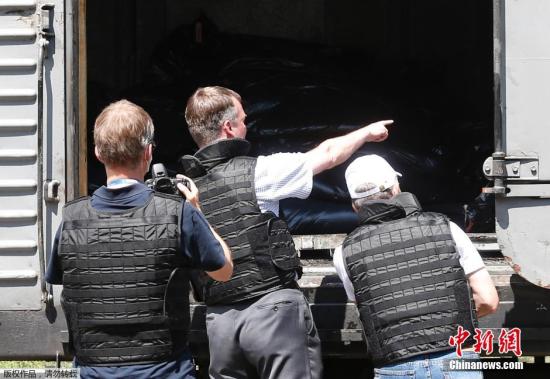 當(dāng)?shù)貢r(shí)間2014年7月20日,烏克蘭頓涅茨克Torez,馬航墜機(jī)遇難乘客遺體被裝上列車?yán)洳剀噹麑⒈贿\(yùn)走。載有部分遺體的火車從距空難現(xiàn)場不遠(yuǎn)的烏克蘭托列茲市出發(fā),前往頓涅茨克市?;疖囯x站前,身處空難現(xiàn)場的歐洲安全與合作組織(歐安組織)代表檢查了運(yùn)載遺體的5節(jié)冷藏車廂。