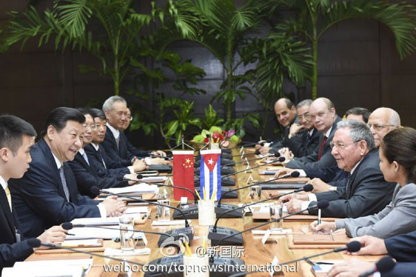 ??? 新華網(wǎng)北京7月23日電 據(jù)新華社“新國際”微博報(bào)道,習(xí)近平22日同古巴國務(wù)委員會主席兼部長會議主席勞爾·卡斯特羅會談時,對發(fā)展中古關(guān)系提出3個“堅(jiān)定不移”:堅(jiān)定不移深化肝膽相照的友誼,堅(jiān)定不移開展互利共贏的合作,堅(jiān)定不移做改革發(fā)展的伙伴。(李學(xué)仁攝)