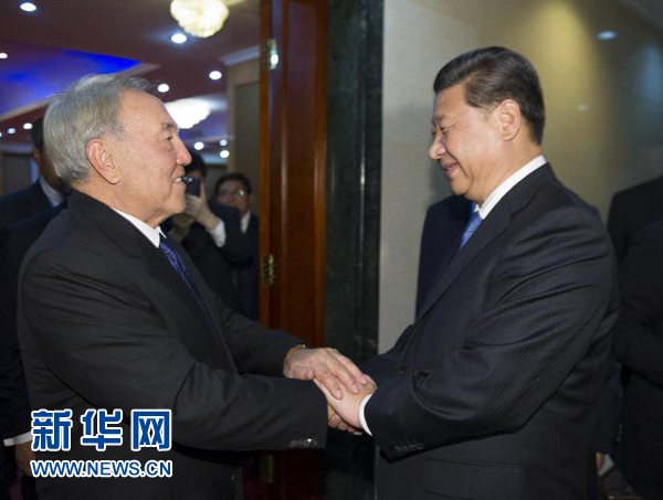 習(xí)近平指出,這是我們今年第四次見面。中哈保持密切高層交往,充分體現(xiàn)了中哈全面戰(zhàn)略伙伴關(guān)系的高水平和特殊性,對指導(dǎo)兩國關(guān)系發(fā)展非常重要。今年5月你對中國進行國事訪問并出席亞洲相互協(xié)作與信任措施會議第四次峰會,我們當(dāng)時達成的各項共識正得到有效落實。你關(guān)心的擴大哈方農(nóng)產(chǎn)品和礦產(chǎn)資源對華出口問題,我已責(zé)成中方有關(guān)部門研究并正在積極解決。