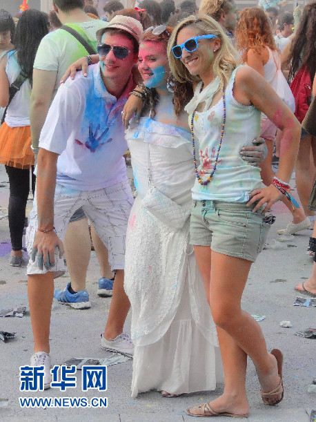 “2014巴塞羅那霍利節(jié)”現(xiàn)場的年輕人 (新華社記者周喆拍攝)