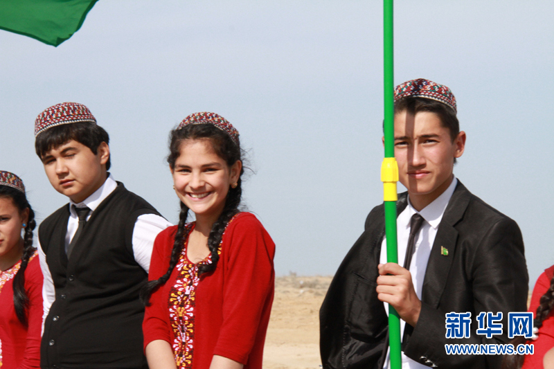 身穿紅色連衣裙的土庫(kù)曼斯坦大學(xué)生? 記者 盧敬利攝