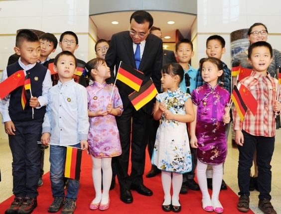 克強(qiáng)總理問了問孩子們的年齡、年級(jí),又跟學(xué)校老師聊起孩子們的學(xué)習(xí)情況,與大家一起合影,鼓勵(lì)孩子們“做中德交往的橋梁”。