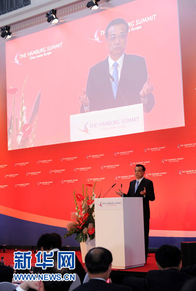 ??? 當(dāng)?shù)貢r(shí)間10月11日中午,國(guó)務(wù)院總理李克強(qiáng)在漢堡出席中歐論壇漢堡峰會(huì)第六屆會(huì)議并發(fā)表題為《樹立互利共贏的新標(biāo)桿》的主旨演講。新華社記者 饒愛民 攝