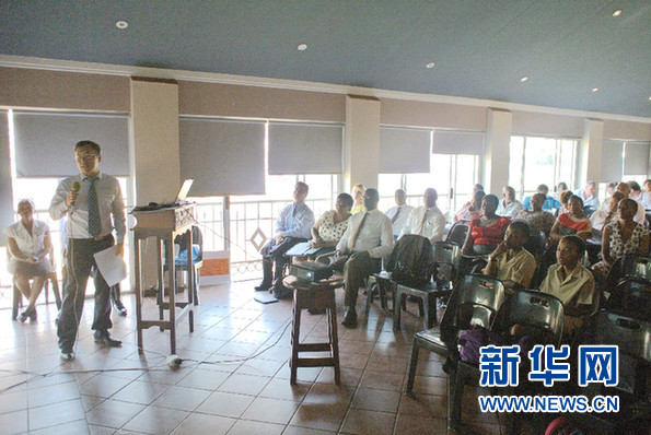 ????中國文化和國際教育交流中心負責(zé)人、南非漢語推廣委員會委員陸志雷博士介紹漢語教學(xué)情況。新華社記者郭興華 攝