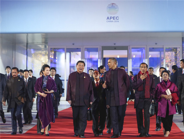 ????新華網(wǎng)北京11月12日電? 據(jù)新華社“新華社發(fā)布”客戶端報道,2014年11月10日-11日,亞太經(jīng)合組織(APEC)領(lǐng)導(dǎo)人第二十二次非正式會議在北京舉行。這場中國“新改革元年”最大規(guī)模的國際盛會上,最忙碌的身影當(dāng)屬“主場外交”的中國國家主席習(xí)近平。從11月10日的歡迎晚宴,直到11日傍晚與美國總統(tǒng)奧巴馬會晤,習(xí)主席度過了繁忙的24小時。