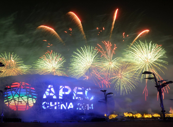 上午9時30分許,亞太經(jīng)合組織領(lǐng)導(dǎo)人非正式會議開始在雁棲湖舉行。