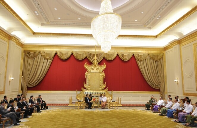 11月14日,李克強(qiáng)總理與緬甸總統(tǒng)吳登盛舉行會談。
