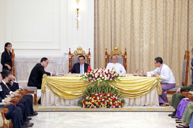 11月14日,李克強(qiáng)總理與緬甸總統(tǒng)吳登盛見證兩國簽署多份協(xié)議。