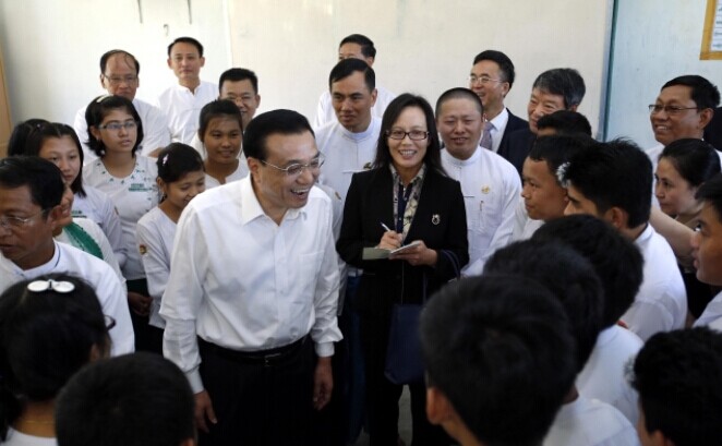 11月14日,克強(qiáng)總理來到內(nèi)比都第十四中學(xué)與青少年們交流。
