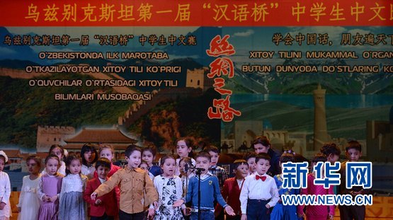 ????新華網(wǎng)塔什干11月16日電(記者沙達(dá)提) 烏茲別克斯坦第一屆“漢語橋”中學(xué)生中文比賽14日在塔什干舉行,本次比賽由中國駐烏茲別克斯坦大使館主辦,以“學(xué)會(huì)中國話,朋友遍天下”為主題的本次比賽吸引了來自塔什干187中學(xué)、塔什干紡織輕工學(xué)院第二附中、塔什干59中學(xué)以及塔什干國立東方學(xué)院尤努薩巴特區(qū)附中等多個(gè)中學(xué)的10名學(xué)子。為了迎接首屆“漢語橋”中學(xué)生中文比賽,在塔什干市中學(xué)里曾進(jìn)行了激烈的初選,最終經(jīng)過層層選拔而脫穎而出的這10名優(yōu)秀選手,獲得了參賽資格。本次比賽包括三個(gè)環(huán)節(jié):自選題演講、知識(shí)問答和才藝表演三個(gè)環(huán)節(jié),要求參賽者在規(guī)定時(shí)間內(nèi)完成問題、展示中文表達(dá)能力、反應(yīng)能力以及才藝特長。