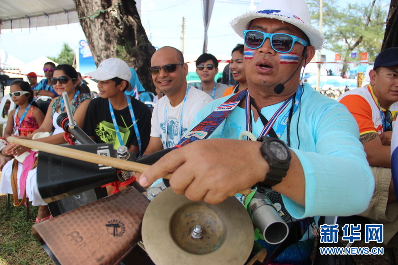 ??? 11月16日,泰國民眾為泰國運(yùn)動健兒加油。中國體育代表團(tuán)16日在泰國普吉舉行的第四屆亞洲沙灘運(yùn)動會上勇奪2枚金牌和2枚銅牌。當(dāng)天比賽全部結(jié)束時(shí),中國隊(duì)以3金2銀5銅的成績暫列獎牌榜第五,東道主泰國隊(duì)以9金11銀12銅的成績暫列金牌榜和獎牌榜第一。新華社發(fā)(塔納攝)