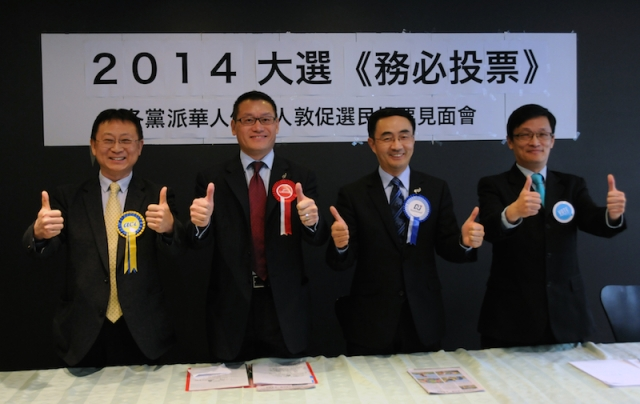 (資料圖片:新西蘭華人競選2014年國會(huì)議員,右二為楊健。新華社記者田野攝)