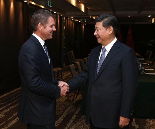 圖為習近平主席在悉尼會見澳大利亞新南威爾士州州長貝爾德。