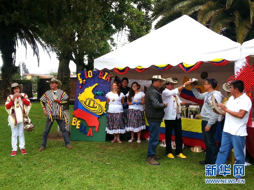 ????哥倫比亞的咖啡、燉肉和草帽吸引了許多來賓。(新華網(wǎng)記者 梁君茜 攝)