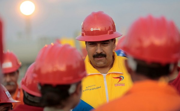 資料圖片:馬杜羅視察委內瑞拉石油公司煉油廠。