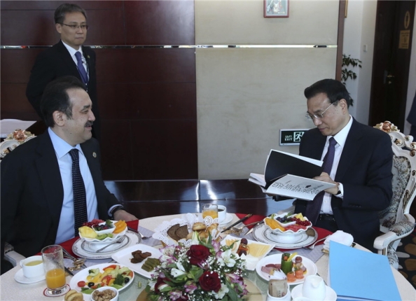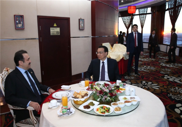 ????新華網(wǎng)北京12月16日電 據(jù)新華社“新華國(guó)際”客戶端報(bào)道,“一日之計(jì)在于晨”。克強(qiáng)總理15日的緊張日程從一頓早飯開始。天剛蒙蒙亮,哈薩克斯坦總理馬西莫夫就來(lái)到克強(qiáng)總理下榻的酒店——北京大廈,邀請(qǐng)克強(qiáng)總理一起吃早餐。