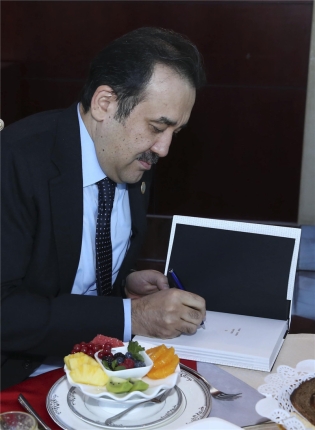 ????馬西莫夫總理則回贈(zèng)給克強(qiáng)總理自己所著《哈薩克斯坦》一書的中譯本和一個(gè)小擺件,他還特意在書的扉頁(yè)上簽上了自己的名字??磥?lái),這位“中國(guó)通”也希望咱們的總理更深入地了解他的國(guó)家。
