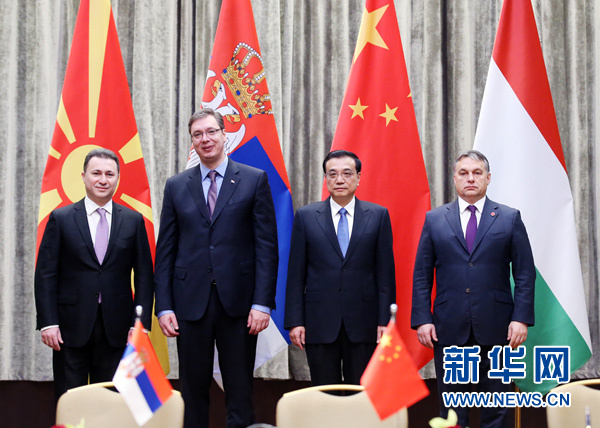 ??? 12月17日,國(guó)務(wù)院總理李克強(qiáng)在貝爾格萊德集體會(huì)見(jiàn)塞爾維亞總理武契奇、匈牙利總理歐爾班和馬其頓總理格魯埃夫斯基。 新華社記者 姚大偉攝