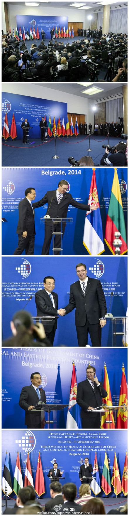 ??? 新華網北京12月17日電 據新華社“新國際”微博報道,李克強16日在貝爾格萊德出席中國-中東歐國家領導人會晤后與東道主塞爾維亞總理武契奇共見記者??偫碚f,中國-中東歐國家合作不僅有利于中國和中東歐國家,也有利于歐洲一體化和平衡發(fā)展,有利于歐盟擴大,有利于地區(qū)和世界的穩(wěn)定與發(fā)展。