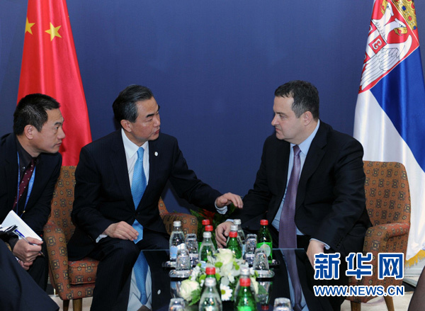 ??? 12月17日,正在陪同李克強總理訪問塞爾維亞的外交部長王毅應約會見塞爾維亞第一副總理兼外長達契奇。 新華社記者 饒愛民 攝