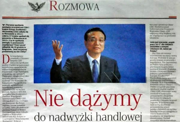 ????波蘭《共和國報》刊登對李克強聯合書面采訪稿件
