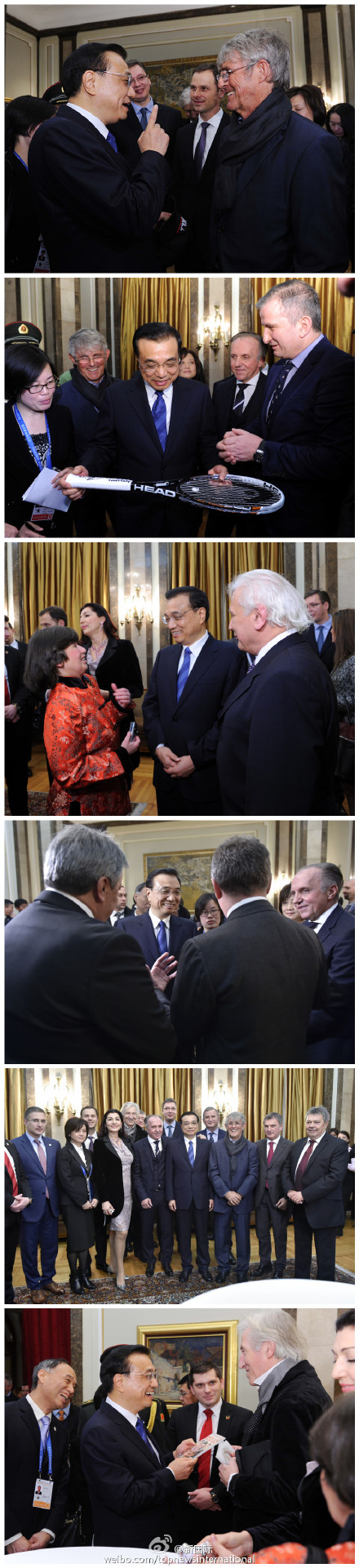??? 當(dāng)?shù)貢r間18日下午,李克強總理在塞爾維亞接受“貝爾格萊德榮譽市民”證書后,同在場的塞各界知名人士交流。他們既有為人熟知的電影演員、足球教練,也有歌劇表演藝術(shù)家和長期研究中國的漢學(xué)家。總理同他們親切交談,現(xiàn)場氣氛友好熱烈。