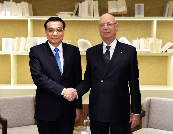 不顧旅途勞頓,克強(qiáng)總理剛下榻酒店就會(huì)見了施瓦布,并應(yīng)邀出席小范圍晚宴。