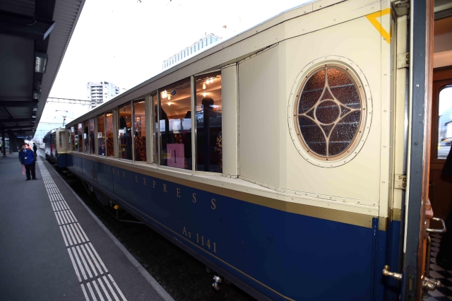 前往達(dá)沃斯通常乘坐的紅色窄軌小火車很有特色??藦?qiáng)總理此次乘坐的專列是瑞方鐵路公司專門用于租借的,充當(dāng)過不少國家領(lǐng)導(dǎo)人的專列,顏色不同于普通小火車的紅色,而是藍(lán)白配色的。