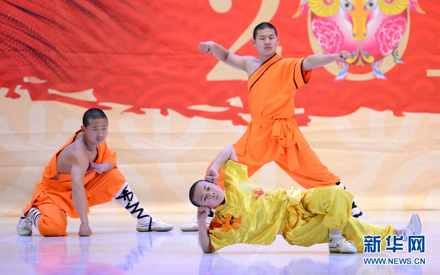 2月4日晚,在烏茲別克斯坦首都塔什干突厥宮,藝術(shù)家在表演中國武術(shù)和舞蹈。新華網(wǎng)記者 沙達(dá)提 攝