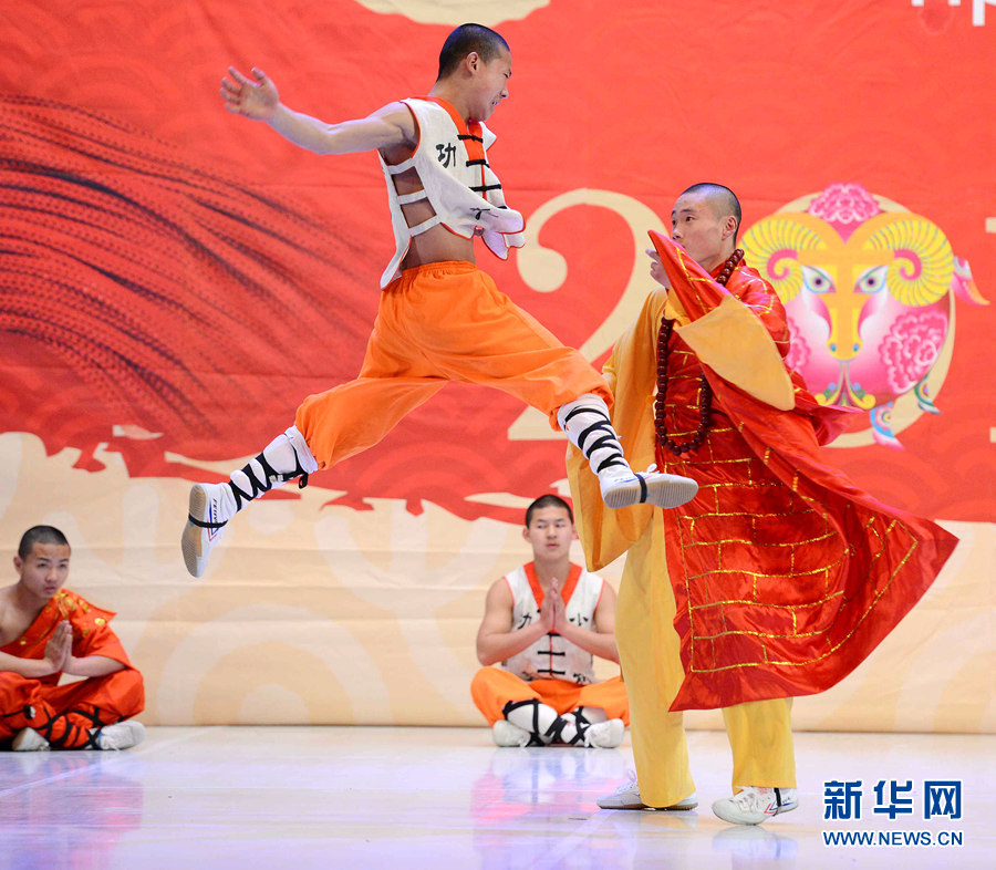 2月4日晚,在烏茲別克斯坦首都塔什干突厥宮,藝術(shù)家在表演中國(guó)武術(shù)和舞蹈。新華網(wǎng)記者 沙達(dá)提 攝