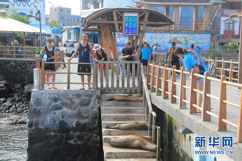????加拉帕戈斯群島在厄瓜多爾海岸以西約1000公里的太平洋中,總面積約8000平方公里,由19個火山島組成,從南美大陸延入太平洋,該陸地的地理環(huán)境也令人驚嘆,白色海灘和黑色火山巖石形成鮮明對比。島上現(xiàn)存一些不尋常的動物物種,如象龜、海獅、海蜥蜴、陸蜥蜴、藍(lán)腳鰹鳥和多種類型的雀類。島上的動物們以主人自居,并不懼怕人類,海獅就是島上的主人之一。