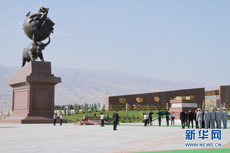土庫曼斯坦總統(tǒng)和內閣成員向地震紀念碑獻花。(新華網記者 盧敬利 攝)