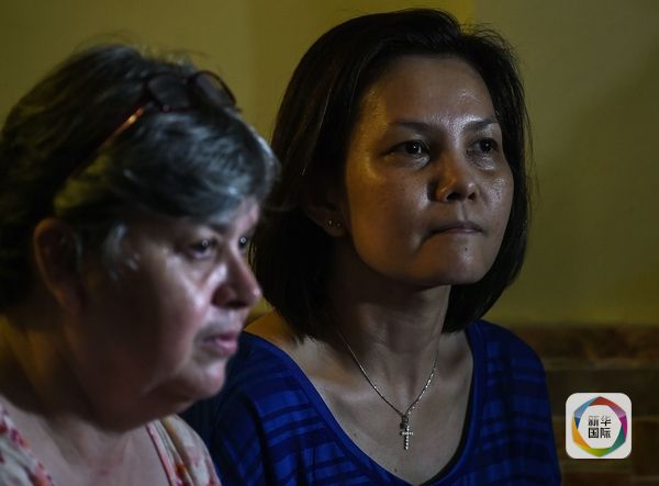MH370乘務(wù)長(zhǎng)帕特里克·戈梅斯的妻子雅克基塔·岡薩雷斯(左)。(圖片來(lái)源:新華/法新)