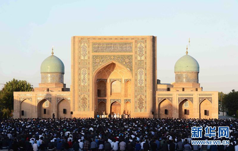 ?。乖拢玻慈?,在烏茲別克斯坦首都塔什干哈斯特·伊瑪姆建筑群清真寺廣場(chǎng),人們參加古爾邦節(jié)禮拜。當(dāng)天,烏茲別克斯坦各地慶祝伊斯蘭教傳統(tǒng)節(jié)日古爾邦節(jié)?!肮艩柊罟?jié)”亦稱“宰牲節(jié)”,是伊斯蘭教三大節(jié)日之一。 新華社記者沙達(dá)提 攝