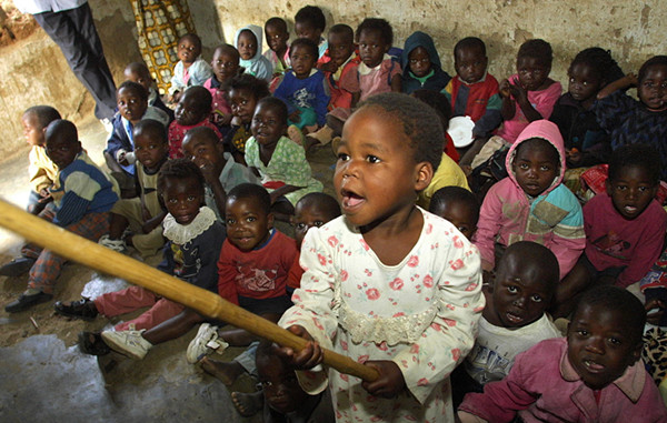這是2001年8月13日,艾滋病患兒坐在馬拉維布蘭太爾市郊的一個(gè)孤兒看護(hù)中心里上課。(新華社發(fā))