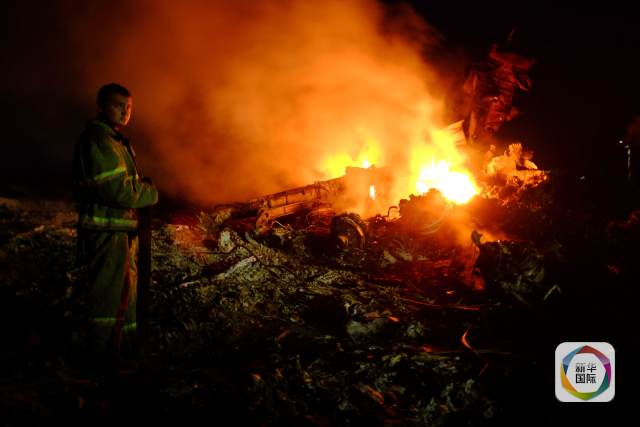 2014年7月17日,在烏克蘭東部地區(qū),一名消防員在馬航客機(jī)墜毀現(xiàn)場滅火。 新華社/法新