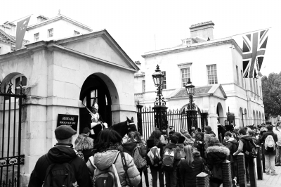 10月16日,在英國倫敦皇家騎兵衛(wèi)隊檢閱場,正門外已掛出大幅中英兩國國旗,往來游人與身穿傳統(tǒng)制服的衛(wèi)隊哨兵合影留念。20日,為前來英國進行國事訪問的習近平主席舉行的歡迎儀式將在這里進行。現(xiàn)場將鳴放21響禮炮,女王伊麗莎白二世與其丈夫愛丁堡公爵菲利普親王將陪同習近平主席檢閱英國皇家儀仗隊。隨后,女王夫婦將陪同習近平主席夫婦從這里乘坐皇家馬車前往白金漢宮,并共進午宴。 本報駐倫敦記者 戴軍攝
