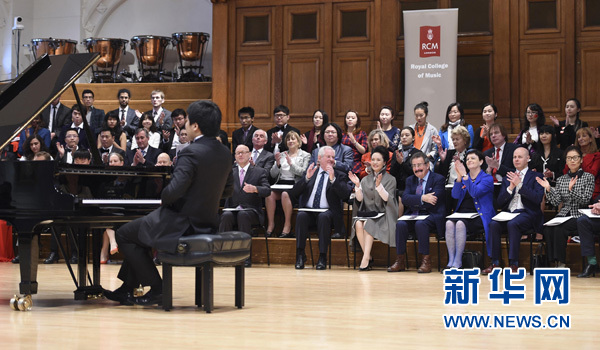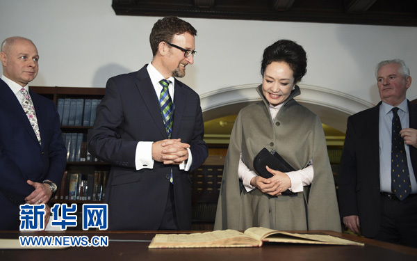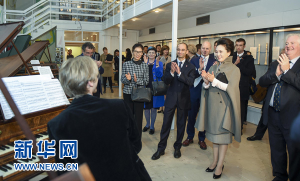 彭麗媛抵達(dá)時(shí),受到皇家音樂(lè)學(xué)院董事會(huì)主席溫斯頓勛爵、學(xué)院院長(zhǎng)、英國(guó)友人等熱烈歡迎。在院長(zhǎng)陪同下,彭麗媛欣賞了獲獎(jiǎng)學(xué)生和校友精彩的聲樂(lè)、器樂(lè)表演,參觀了樂(lè)器博物館,觀賞了圖書(shū)館珍藏的莫扎特、肖邦等音樂(lè)大師創(chuàng)作手稿,并同學(xué)院師生進(jìn)行交流。彭麗媛表示,音樂(lè)作為一種高尚的藝術(shù)形式,超越國(guó)家、民族、歷史、文化界限。皇家音樂(lè)學(xué)院培養(yǎng)出眾多世界級(jí)藝術(shù)家。中國(guó)有不少音樂(lè)作品享譽(yù)世界,希望皇家音樂(lè)學(xué)院今后加強(qiáng)同中國(guó)音樂(lè)院校的交流,為促進(jìn)中英教育和藝術(shù)合作貢獻(xiàn)力量。