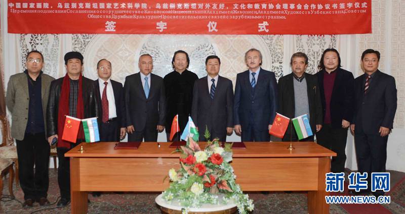當天上午,中國國家畫院院長楊曉陽與烏茲別克斯坦對外友協(xié)副主席阿比多夫和烏茲別克斯坦國家藝術(shù)科學(xué)院院長努爾金諾夫,在中國駐烏茲別克斯坦大使孫立杰以及烏媒體代表共同見證下,分別在協(xié)議書上簽字。協(xié)議聲明,三方將定期為兩國藝術(shù)家開展美術(shù)創(chuàng)作、研究提供條件,定期舉辦創(chuàng)作寫生、藝術(shù)展覽及學(xué)術(shù)研討等文化藝術(shù)交流活動。