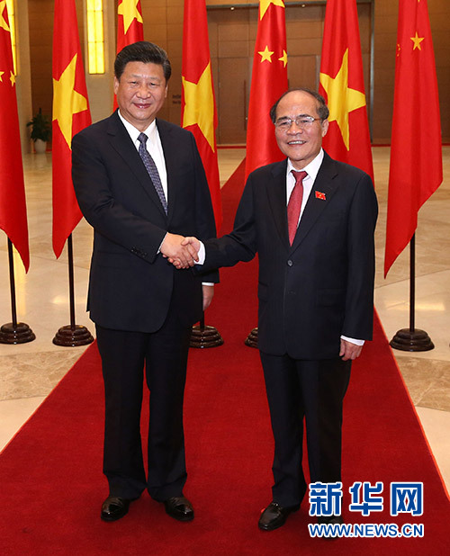 習(xí)近平高度評價中國全國人大和越南國會之間的友好交流合作。習(xí)近平指出,兩國立法機關(guān)在國家政治生活中發(fā)揮著重要作用,也是加強兩國人民相互了解和友誼的重要橋梁。期待兩國立法機關(guān)為夯實中越關(guān)系的民意基礎(chǔ)作出更大貢獻。習(xí)近平向阮生雄介紹了中國社會主義民主和法治建設(shè)有關(guān)情況。