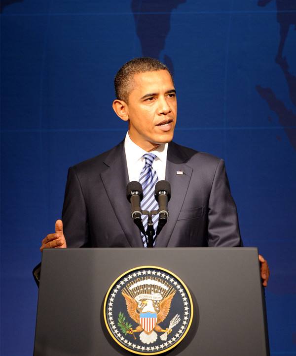 2010年11月13日,美國總統(tǒng)奧巴馬在APEC工商領(lǐng)導(dǎo)人峰會(huì)上發(fā)表演講。
