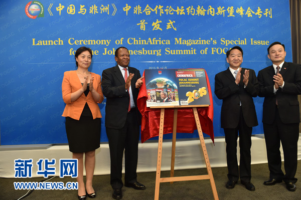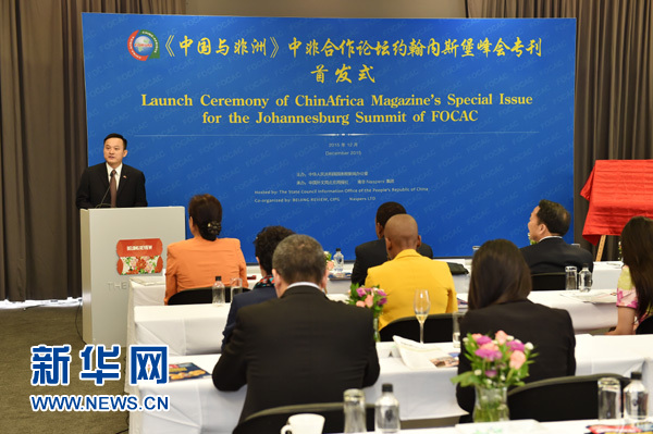 12月3日在南非約翰內(nèi)斯堡拍攝的《中國與非洲》雜志約翰內(nèi)斯堡峰會??装l(fā)式現(xiàn)場。新華社記者 孫瑞博攝