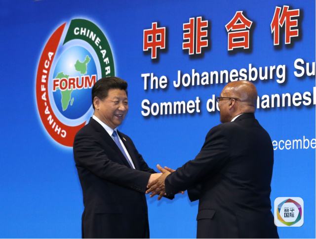 12月4日,國(guó)家主席習(xí)近平出席中非合作論壇約翰內(nèi)斯堡峰會(huì)開幕式并發(fā)表致辭。這是南非總統(tǒng)祖馬迎接習(xí)近平。(新華社記者龐興雷攝)