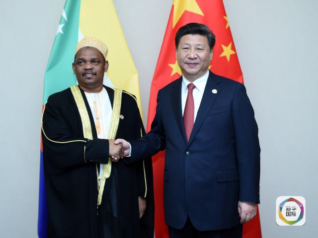 12月4日,國(guó)家主席習(xí)近平在約翰內(nèi)斯堡會(huì)見科摩羅總統(tǒng)伊基利盧。(新華社記者張鐸攝)